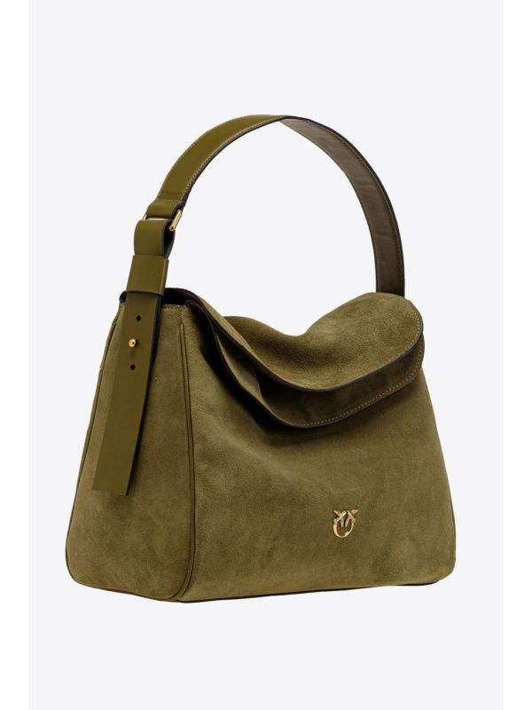 Torba od brušene kože karakterističnog mekog oblika, prilagođena pločicom Love Birds Diamond Cut na prednjoj strani. Zatvarač ima dvostruki preklop s efektom lišća i malu unutarnju kukicu.