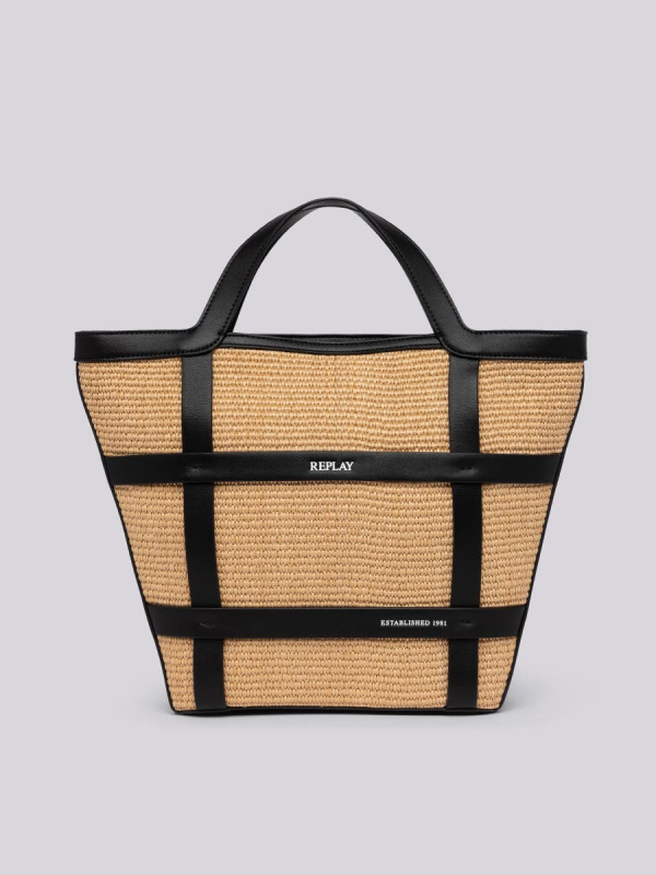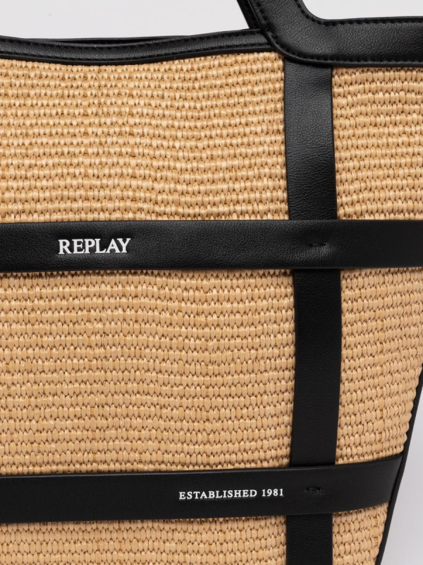 Ženska REPLAY mini tote torbica od rafije s jednobojnim detaljima.