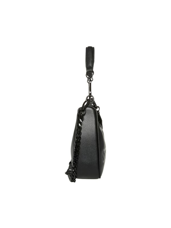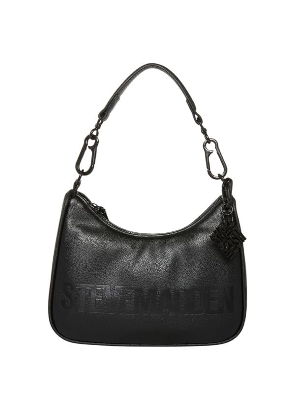 Steve Madden Bprime crna ženska torbica sa logo privjeskom u istoj boji.