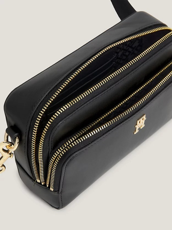 Ploča s monogramom i svjetlucavi metalni dijelovi podižu ovu 'camera bag' na patentni zatvarač, koja ima podesivi remen za udobno nošenje na drugim mjestima.