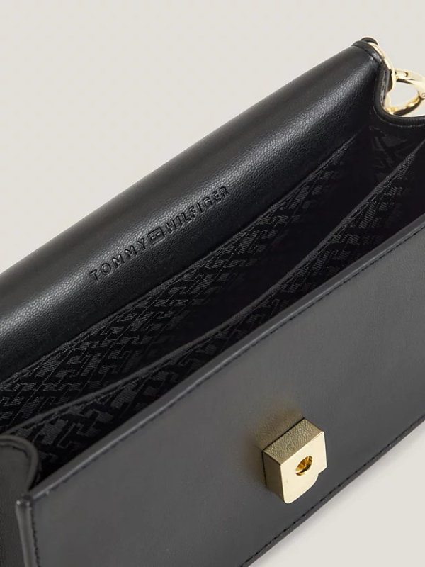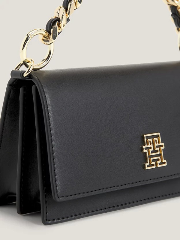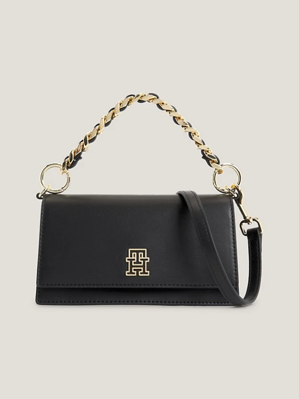 Upotpunite večernji look uz ovu profinjenu torbu s plaketom s monogramom TH, s luksuznom gornjom ručkom na lancu i podesivim križnim remenom.