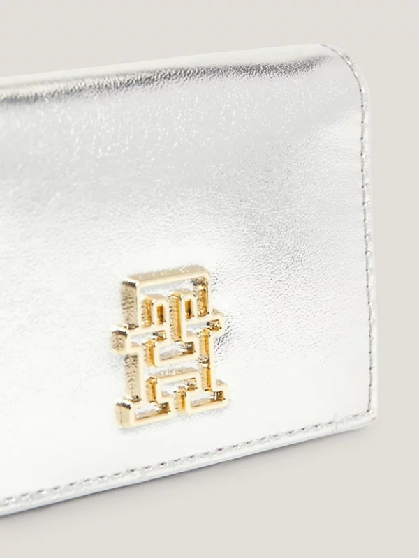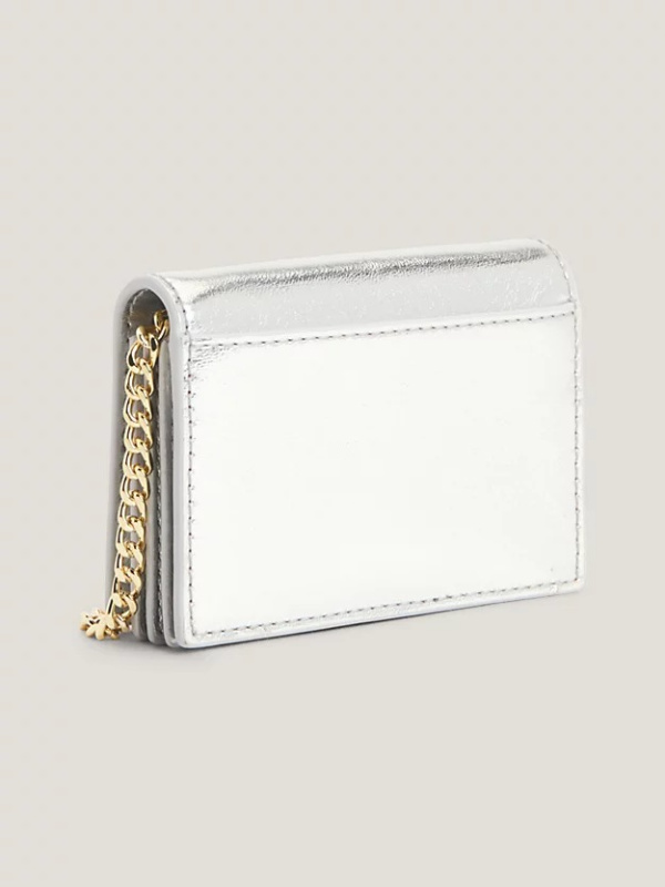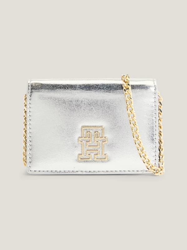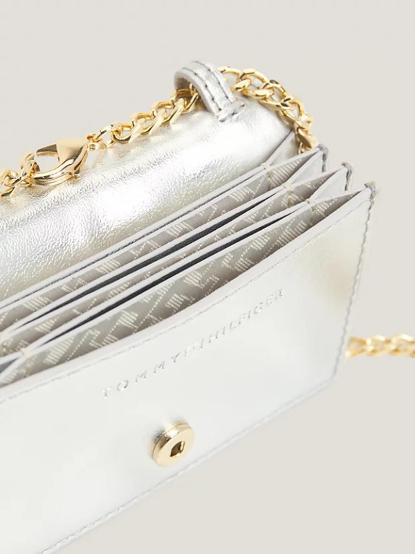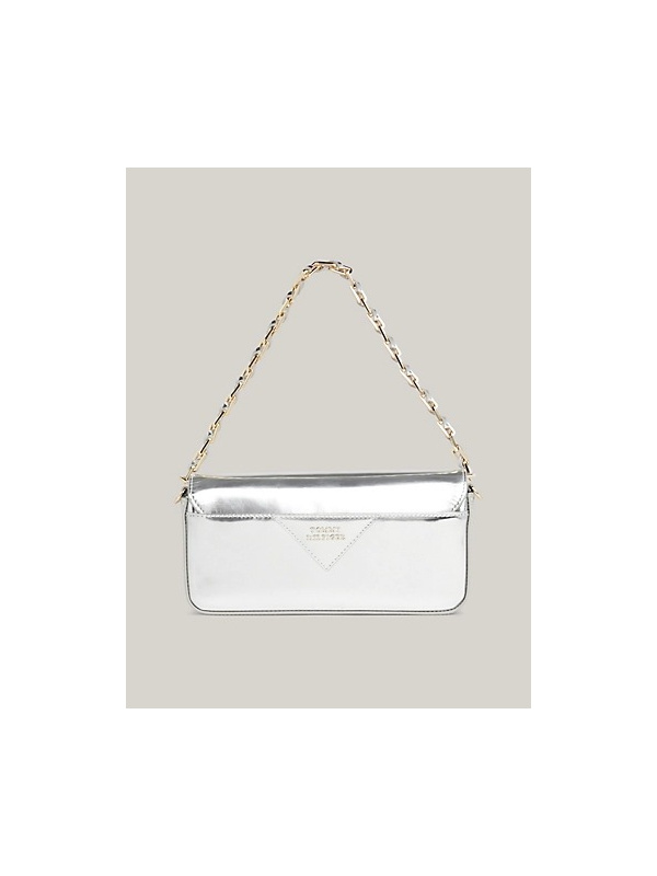 Ženska metalik siva Tommy Hilfiger mala torbica za rame s lancem i srebrnom obradom