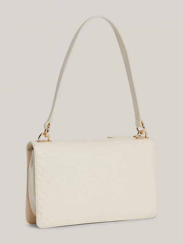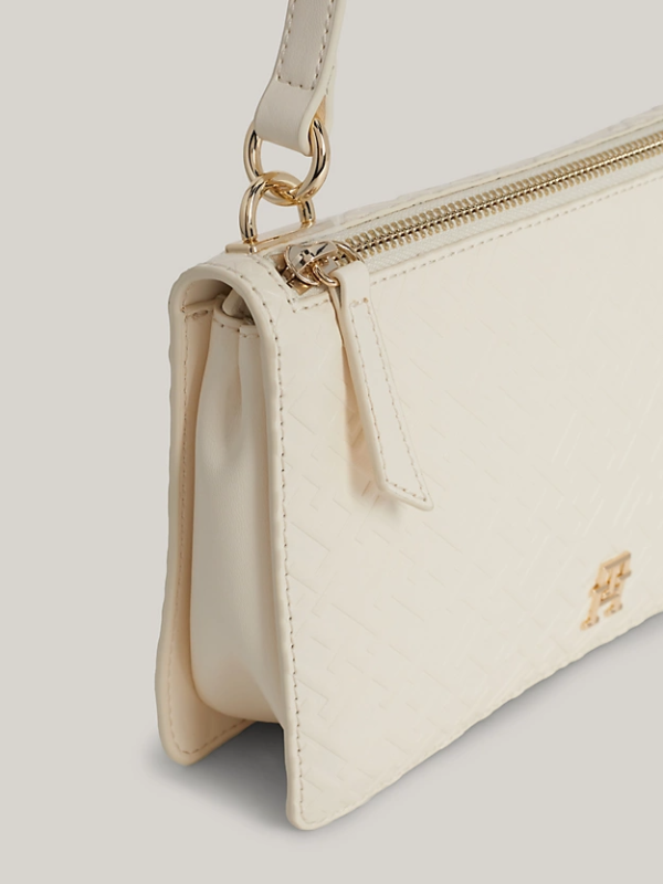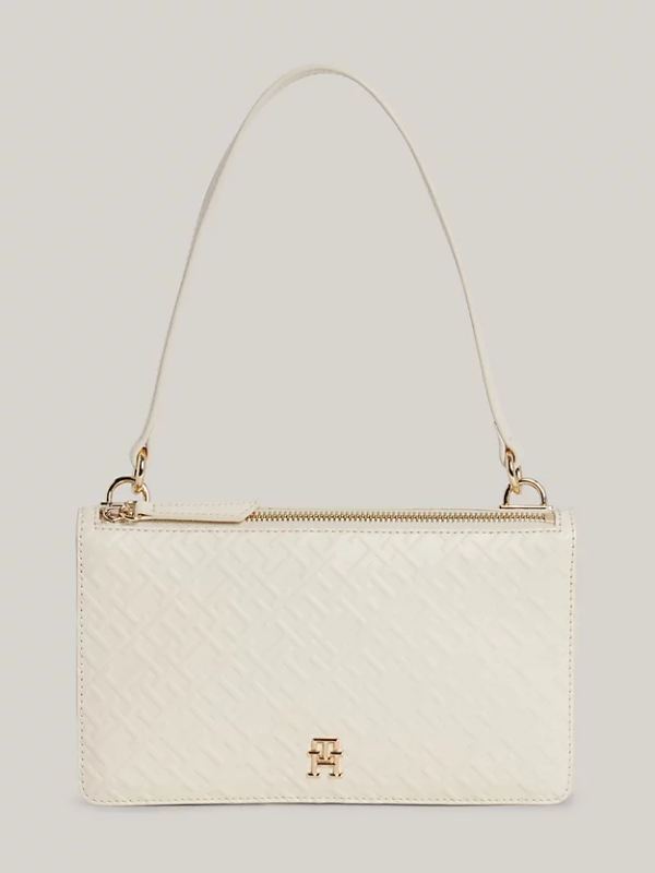 Teksturirani tonski TH uzorak monograma trenutno dodaje šarm ovoj kompaktnoj torbi za rame koja ima džep s patentnim zatvaračem za vaše ključeve.
