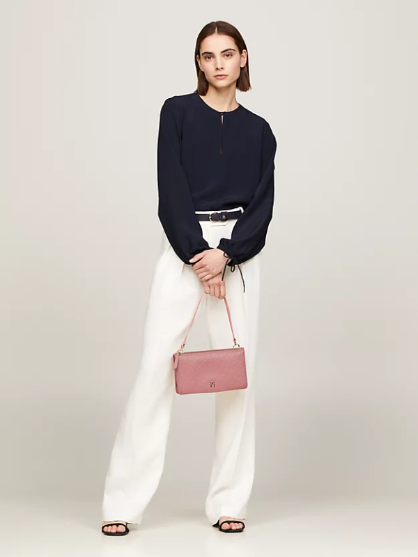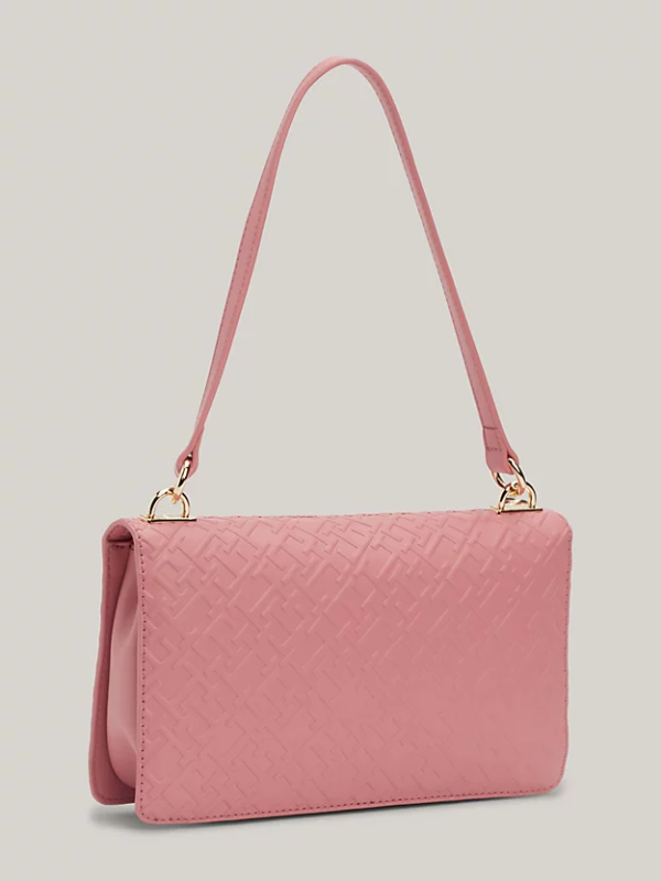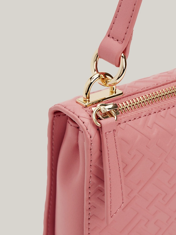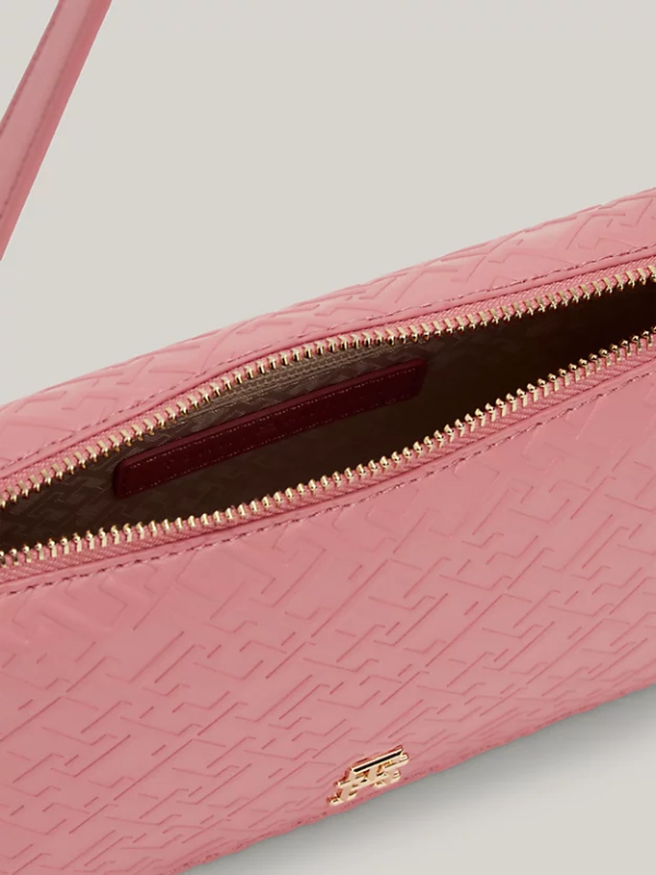 Teksturirani tonski TH uzorak monograma trenutno dodaje šarm ovoj kompaktnoj torbi za rame koja ima džep s patentnim zatvaračem za vaše ključeve.