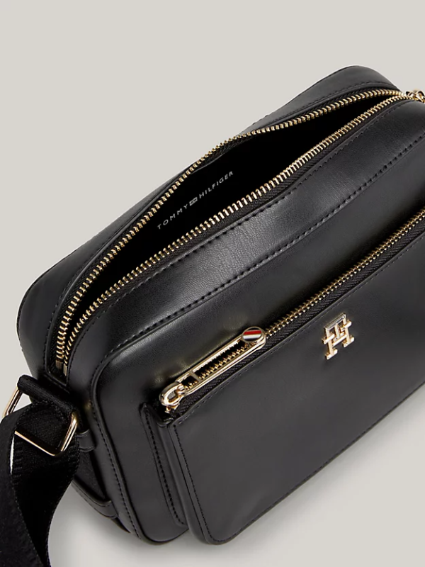 Upotpunite svoj radni i vikend izgled s ovom svestranom Tommy Hilfiger torbom za fotoaparat, glatke teksture ukrašene luksuznim metalnim dijelovima.