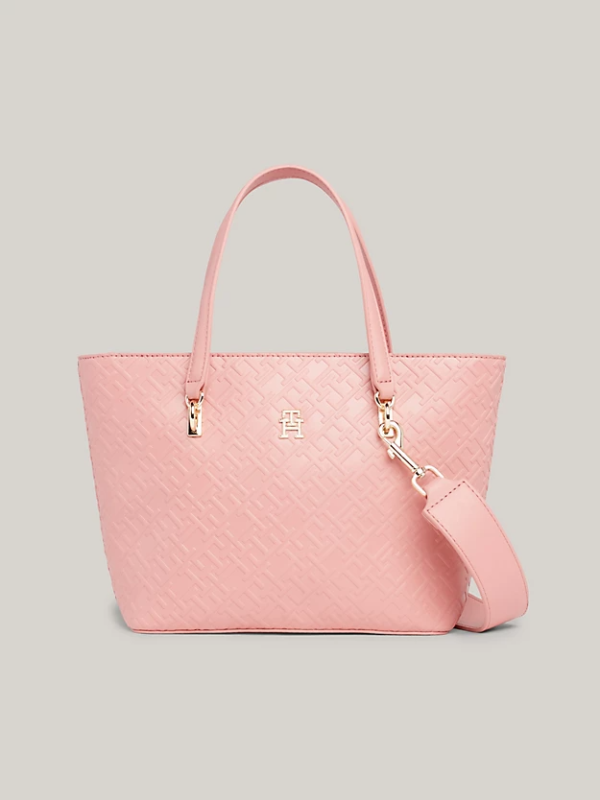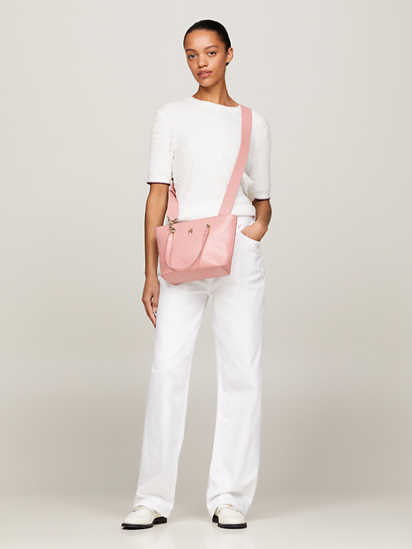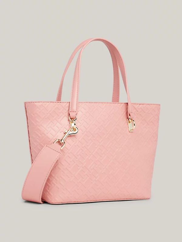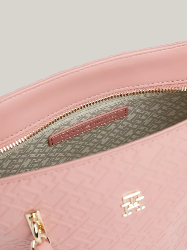 Kombinacija utisnutih detalja monograma TH i poliranog metalnog pribora daje profinjenu notu ovoj strukturiranoj torbi.