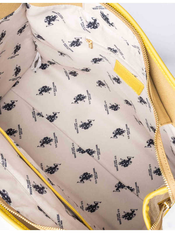 Ženska U.S. POLO ASSN. torba za plažu od rafije sa žutim detaljima