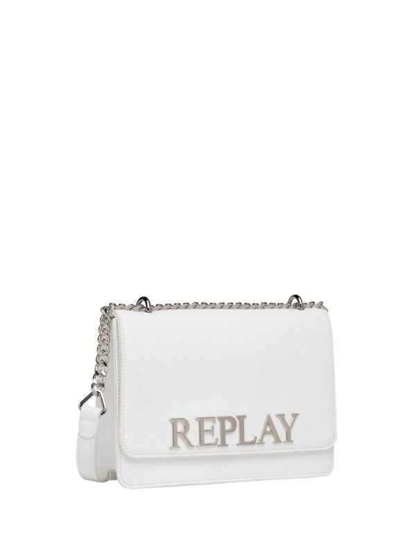 Ženska bijela Replay torbica na preklop s metalnim logom u boji srebra