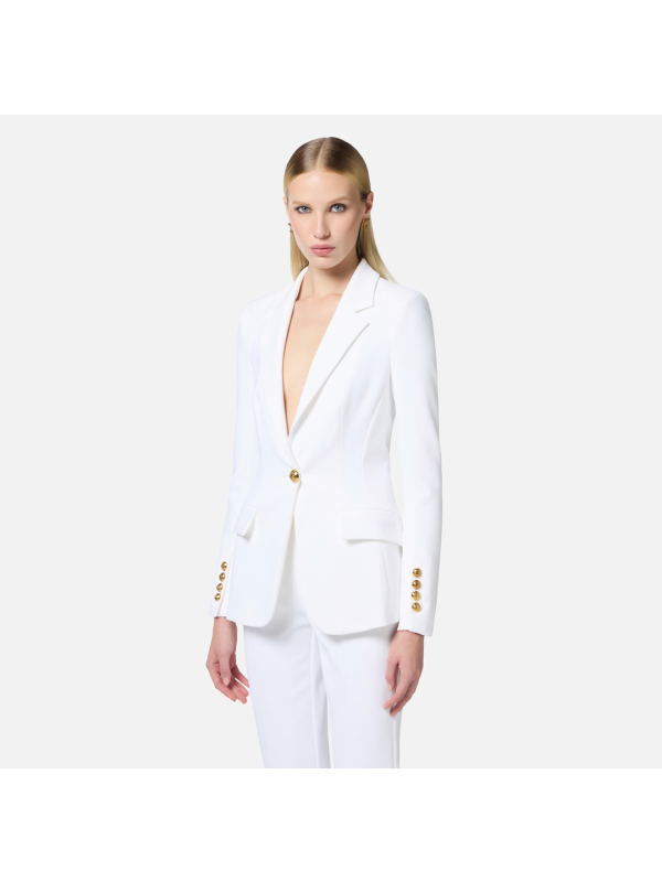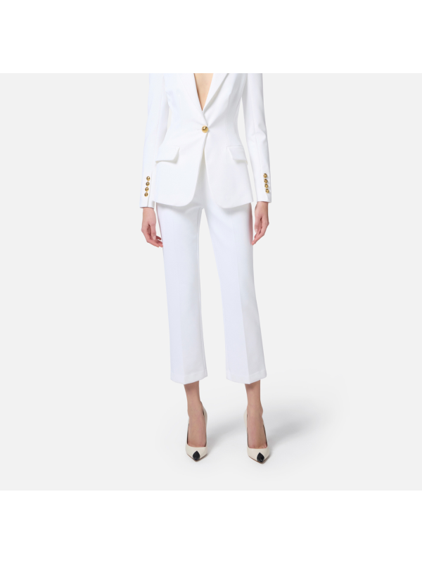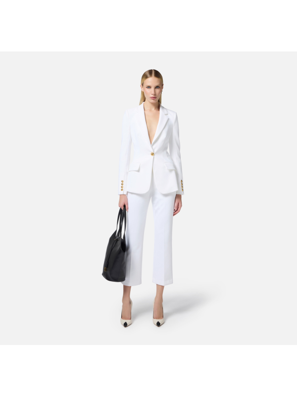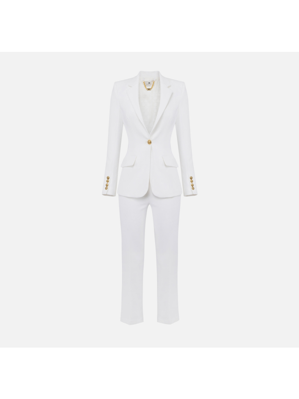 Ženski ivory bijeli Elisabetta Franchi jednoredno odijelo od rastezljive krep tkanine