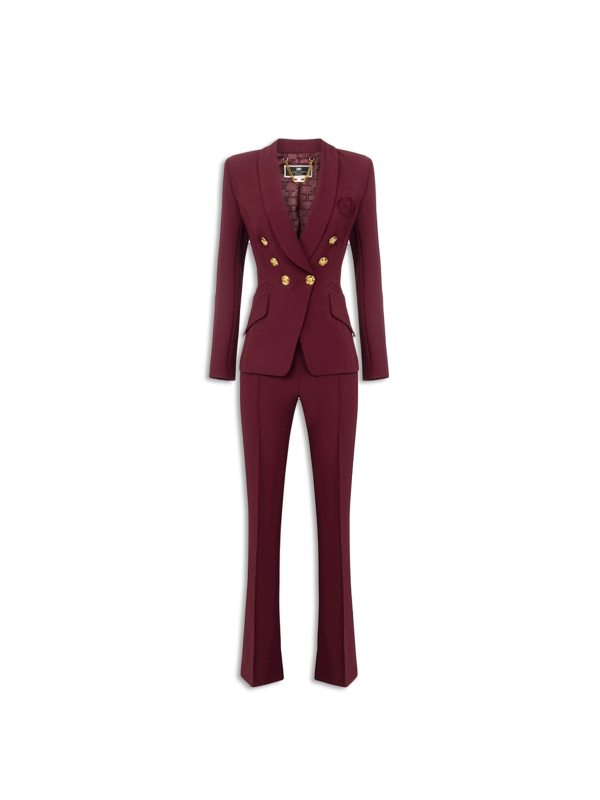 Tallieur od dvostruko rastezljivog krepa koji se sastoji od sakoa s dvorednim kopčanjem s džepovima na rubu i preklopom ukrašenim vezom logotipa na prsima