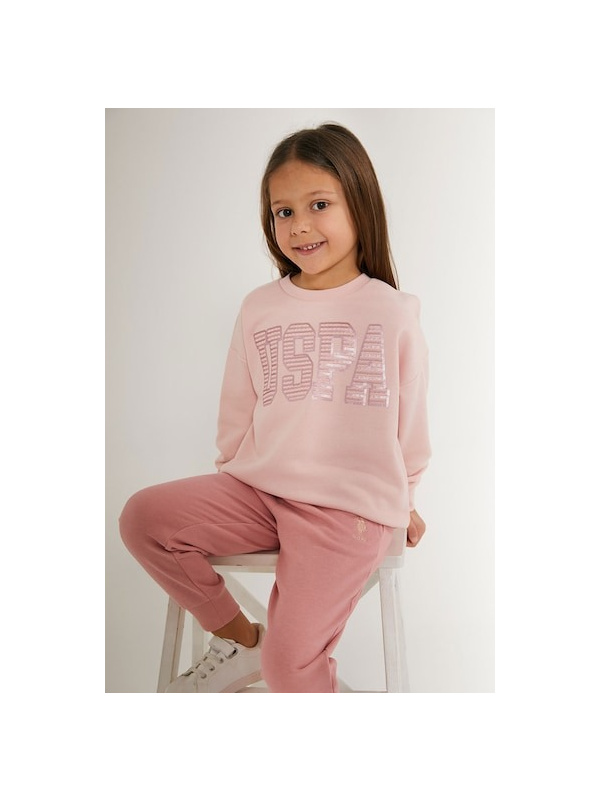 Komplet U.S. POLO ASSN. trenerka za djevojčice u svijetlo-rozoj boji