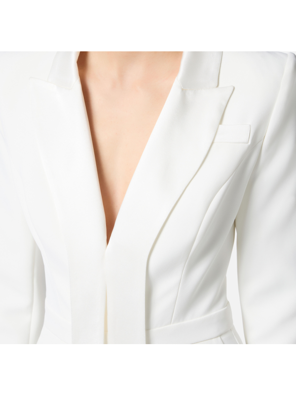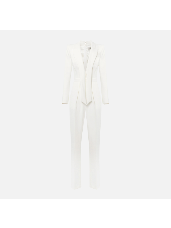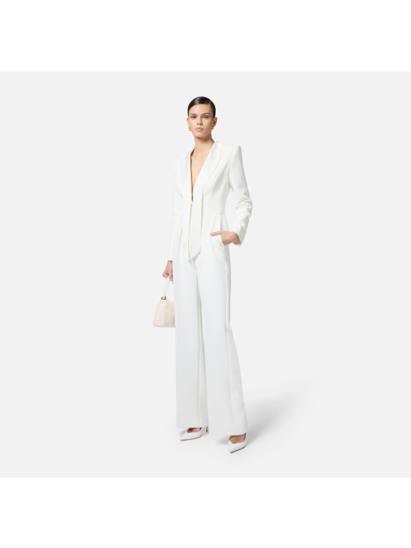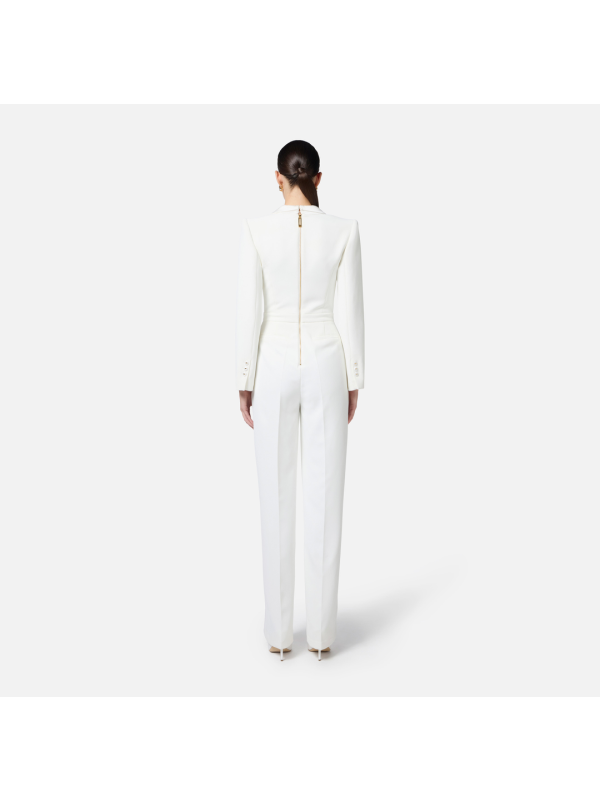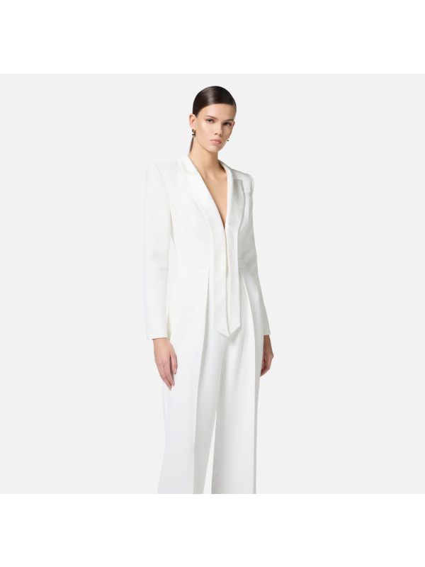 Ženski ivory bijeli Elisabetta Franchi crepe smoking kombinezon sa satenskim reverima