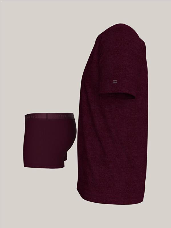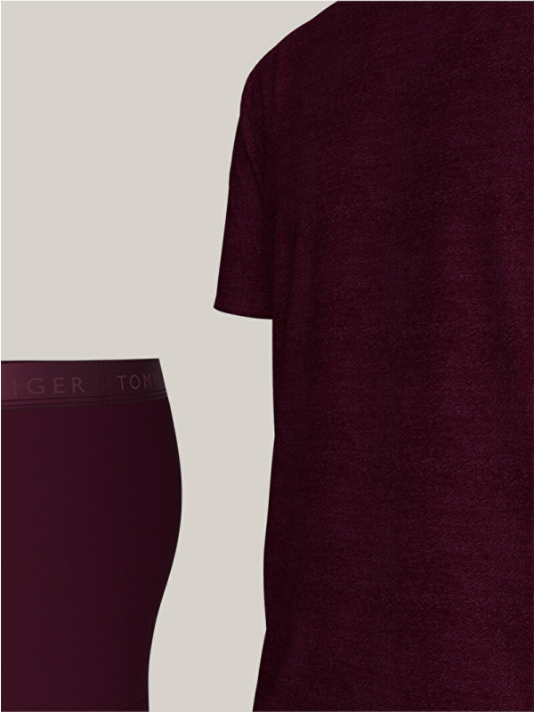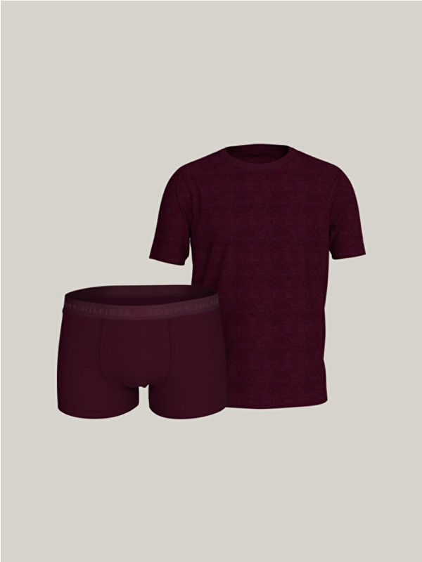 Sastoji se od Tommy Hilfiger udobne majice kratkih rukava i bokserica u bordo boji, ovaj set je obogaćen elegantnim detaljima u tonu, nudeći prepoznatljiv stil koji je sofisticiran, a u isto vrijeme neupadljiv.