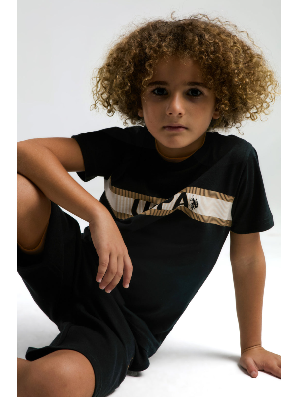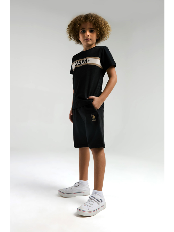 Crni U.S. POLO ASSN. set za dječake koji se sastoji od majica kratkih rukava i šorca