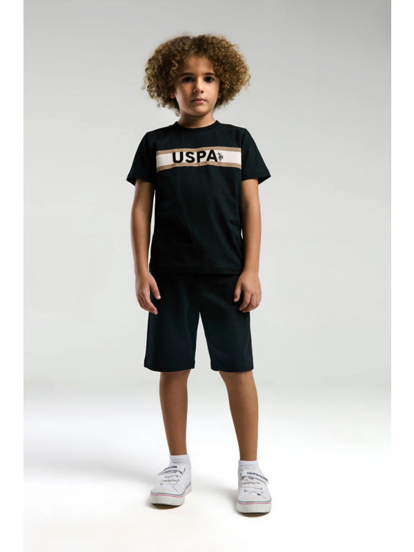 Crni U.S. POLO ASSN. set za dječake koji se sastoji od majica kratkih rukava i šorca