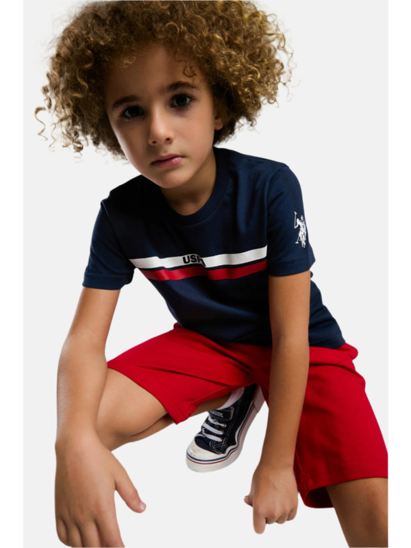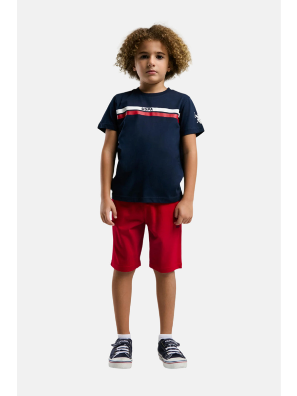 U.S. POLO ASSN. komplet za dječake koji se sastoji od tamnoplave majice kratkih rukava i crvenog šorca