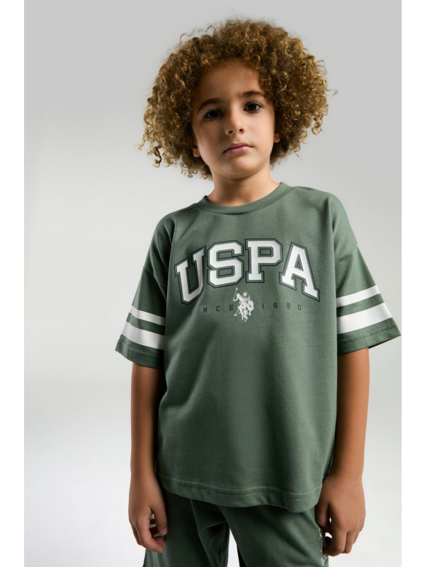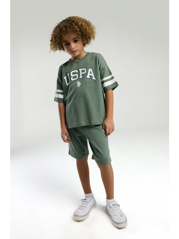 Tamnozeleni U.S. POLO ASSN. set za dječake koji se sastoji od majice kratkih rukava i šorca