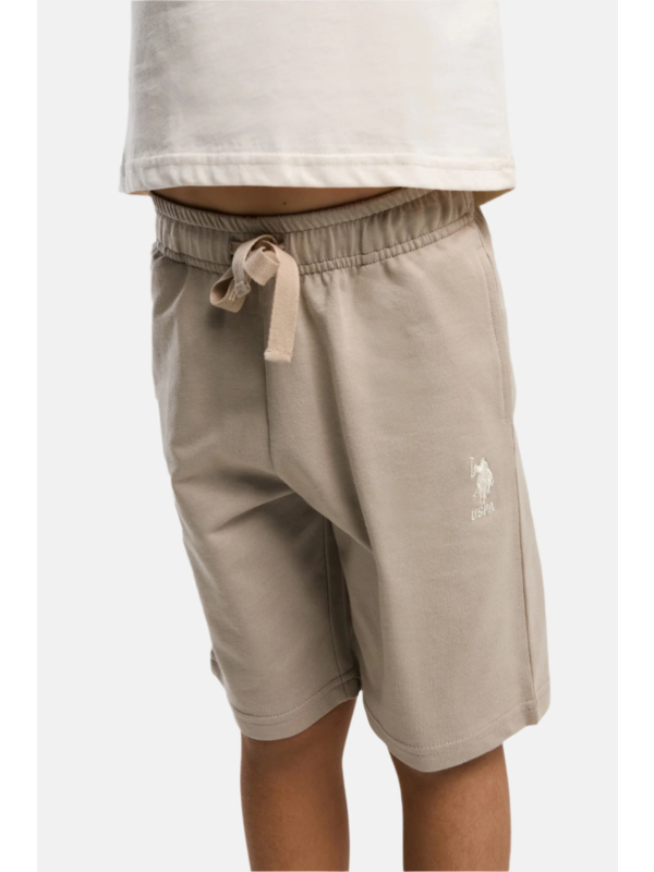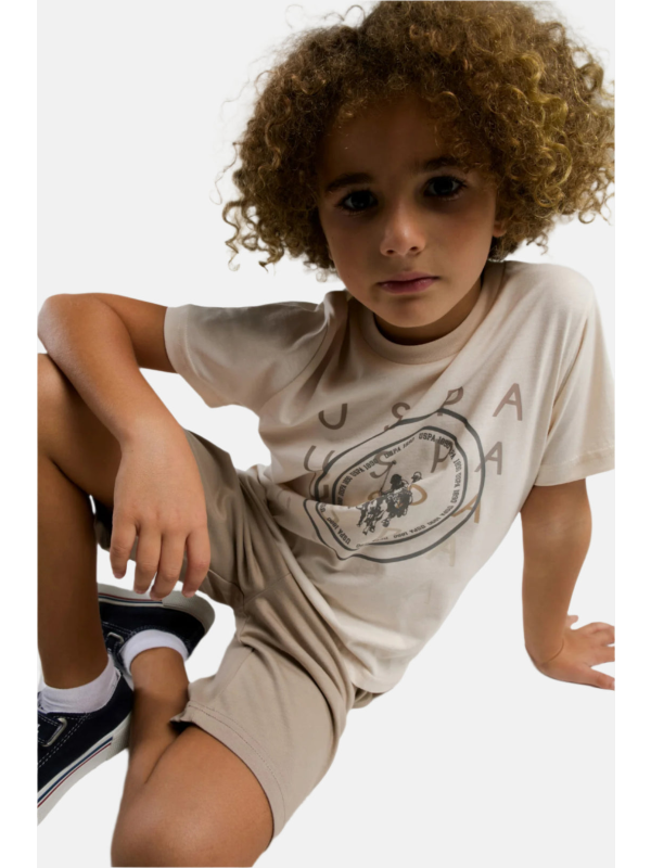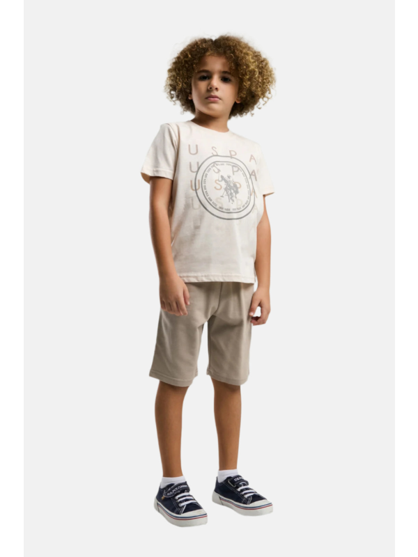 U.S. POLO ASSN. komplet za dječake u svijetlo-bež boji koj ise sastoji od majice kratkih rukava i šorcom