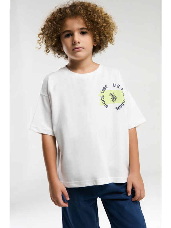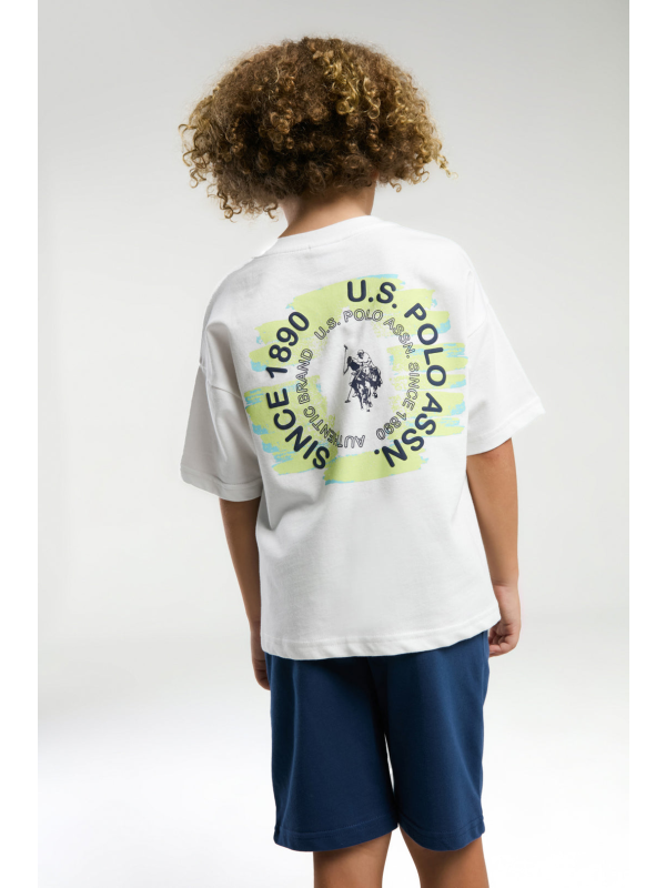 Bijela U.S. POLO ASSN. majica kratkih rukava za dječake s logom na prsima i printom na leđima
