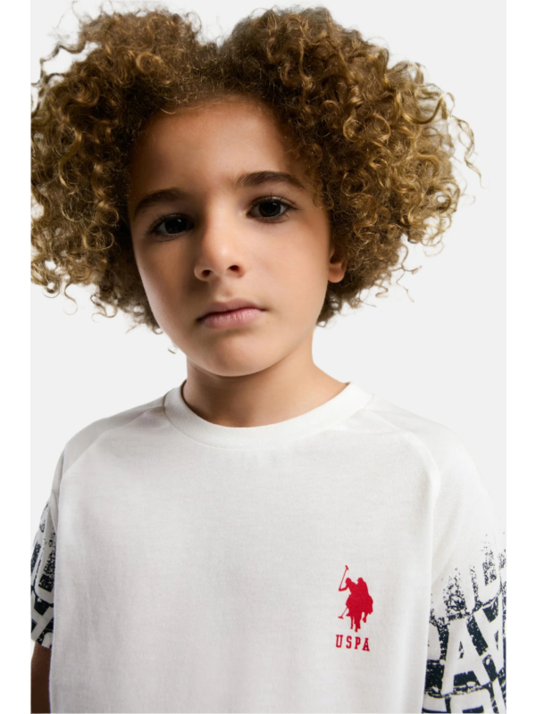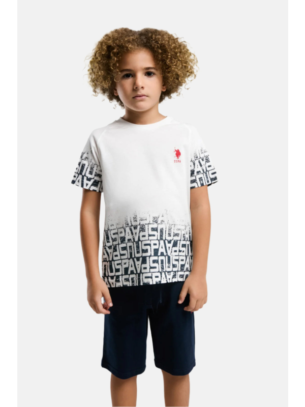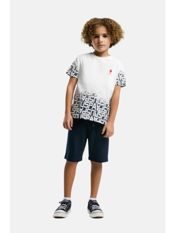 U.S. POLO ASSN. komplet za dječake koji se sastoji od bijele majice kratkih rukava s printom i šorca