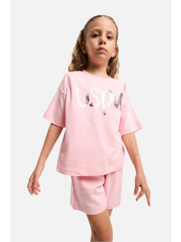 Svijetlorozi U.S. POLO ASSN. komplet za djevojčice s kratkim rukavima