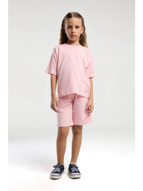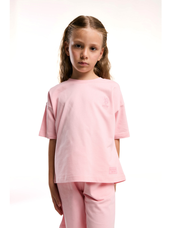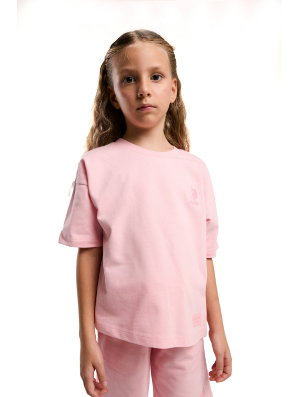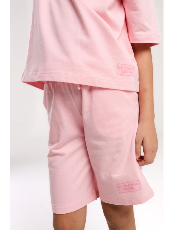 Rozi koraljni U.S. POLO ASSN. set za djevojčice koji se sastoji od majica i šorca