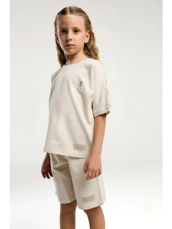 U.S. POLO ASSN. bež set za djevojčice koji se sastoji od majice kratkih rukava i šorca