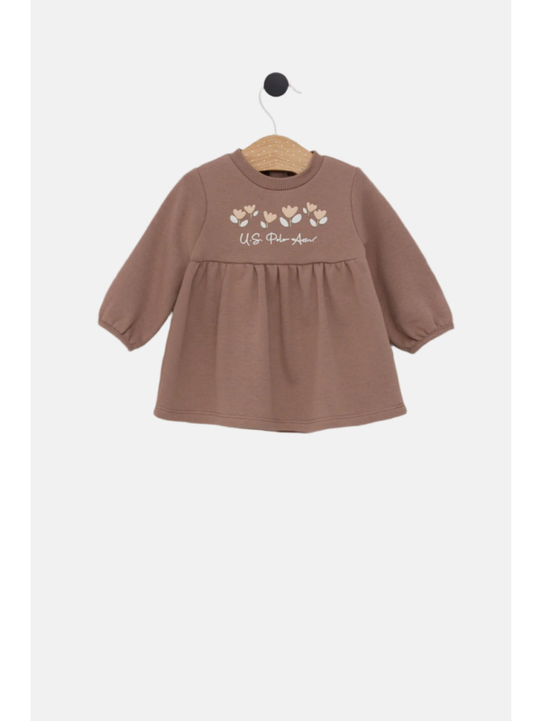 Smeđa U.S. POLO ASSN. haljina za bebe s cvjetnim motivom