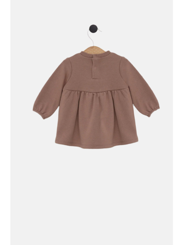 Elegantna haljinica u toplijoj smeđoj nijansi pruža udobnost i stila malim damama.