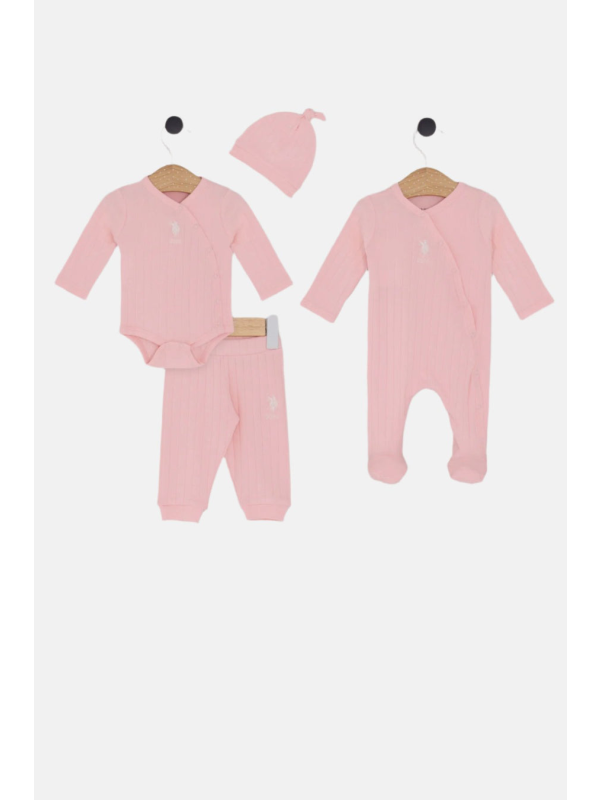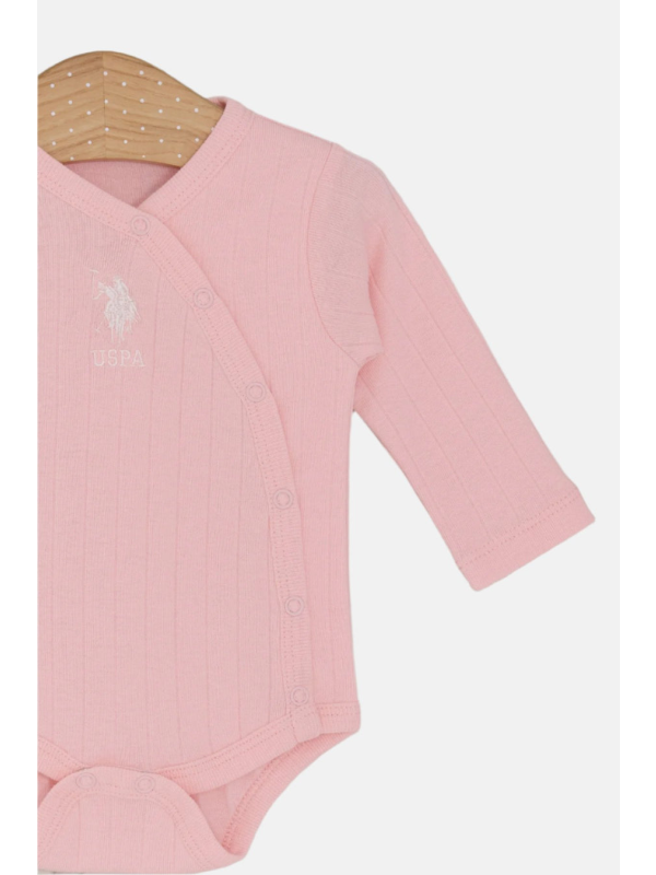 Svijetlorozi U.S. POLO ASSN. kombinezon za bebe s kapicom