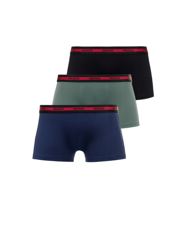 Komplet donjeg rublja iz HUGO muške kolekcije. Modeli uskog kroja s elastičnim pojasom ukrašeni logotipom tvrtke, izrađeni od prirodnog mekog pamuka s dodatkom elastičnih vlakana, pružaju slobodu kretanja i udobno pristajanje na figuru.