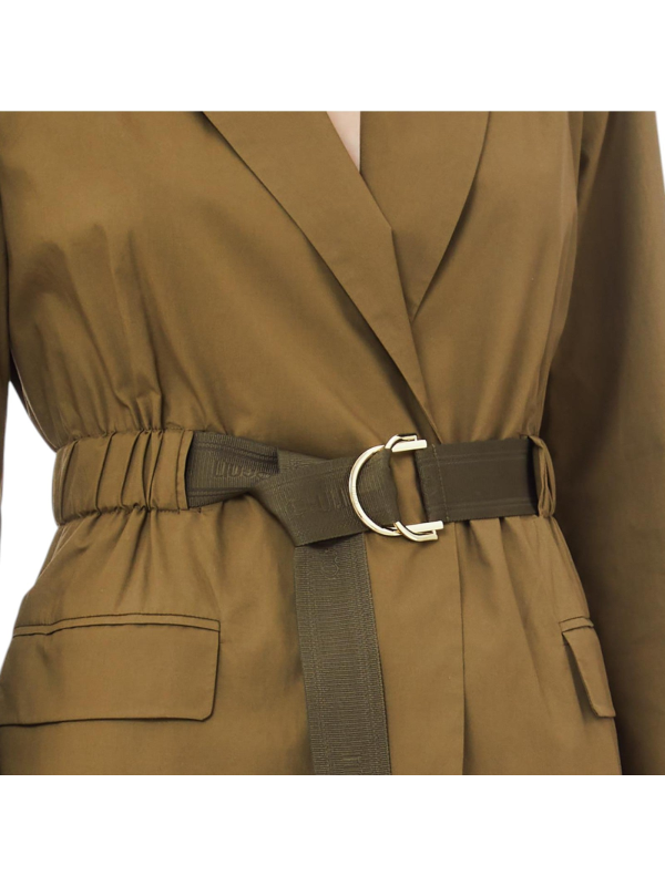Ženski Liu Jo smeđi sako od tkane tkanine s remenom, džepovima na preklop i ovratnikom na preklop