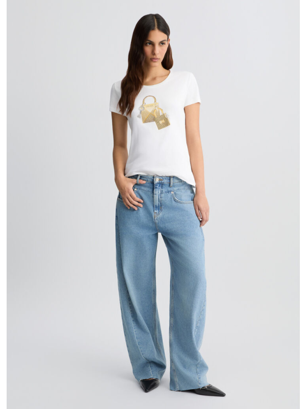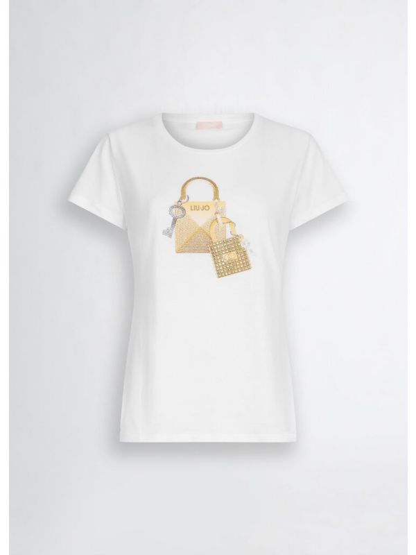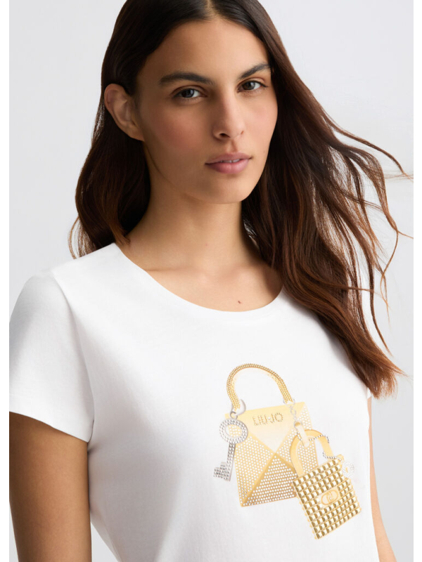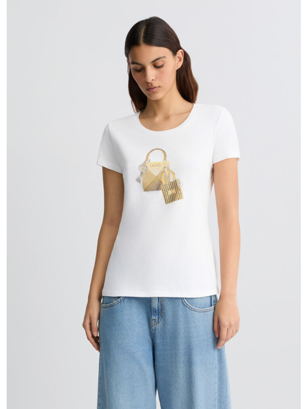 Ženska bijela Liu Jo majica s printom i kamenčićima