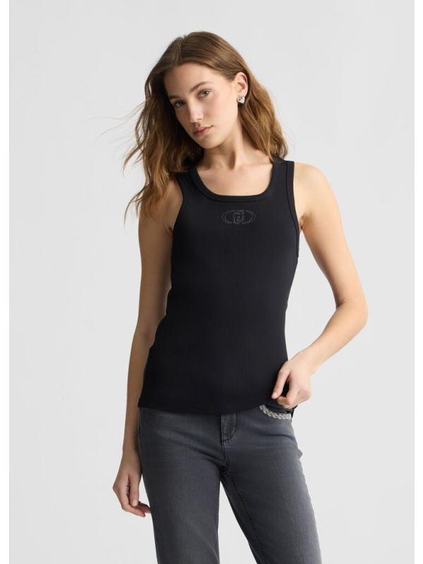 Ženski crni Liu Jo pamučni top s logotipom