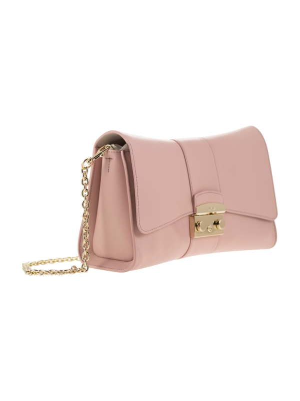 Torba ima isto zatvaranje kao kultna Furla Metropolis, a njezin remen s lancem koji se može skinuti omogućuje nošenje na ramenu ili kao spojku
