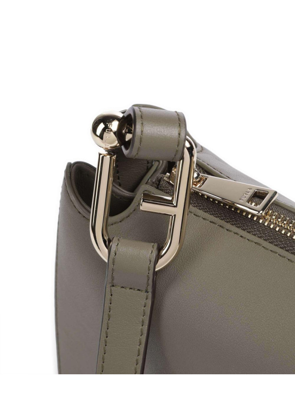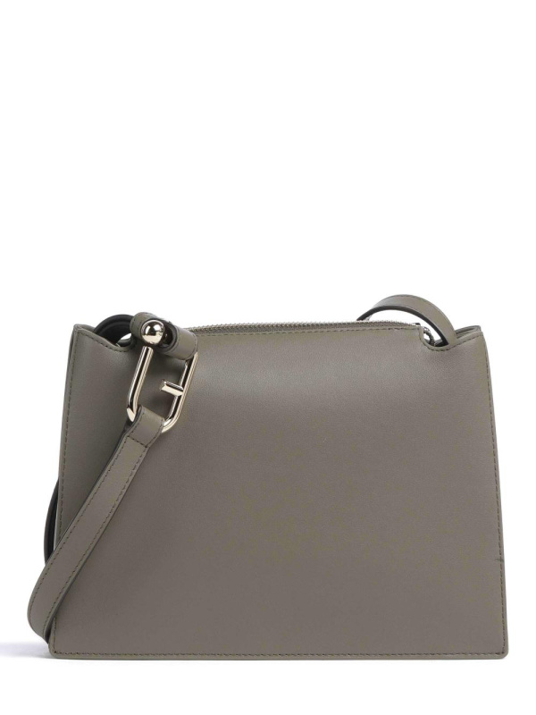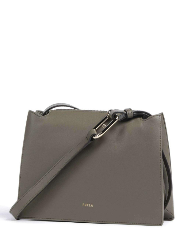 Ženska siva Furla Nuvola S torba za preko ramena od meke zrnate kože