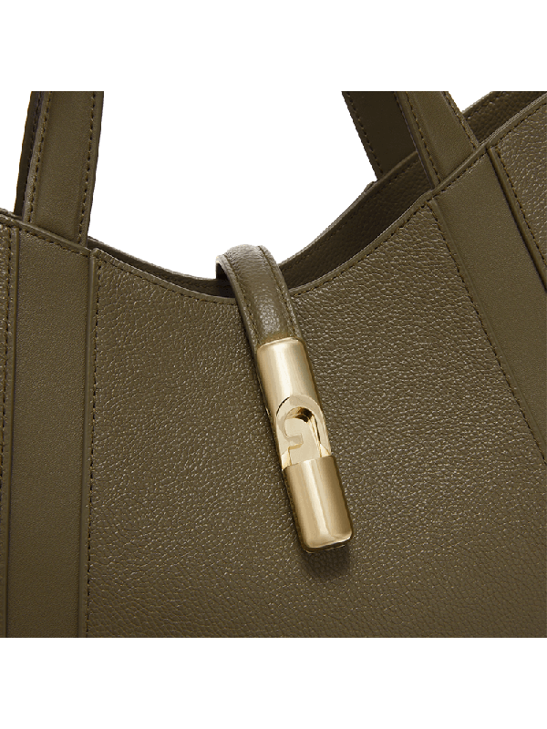 S dimenzijama nakita i elegantnom siluetom, horizontalna Furla Goccia torba od zrnate kože ukrašena je detaljima od glatke kože za svestran i moderan izgled.