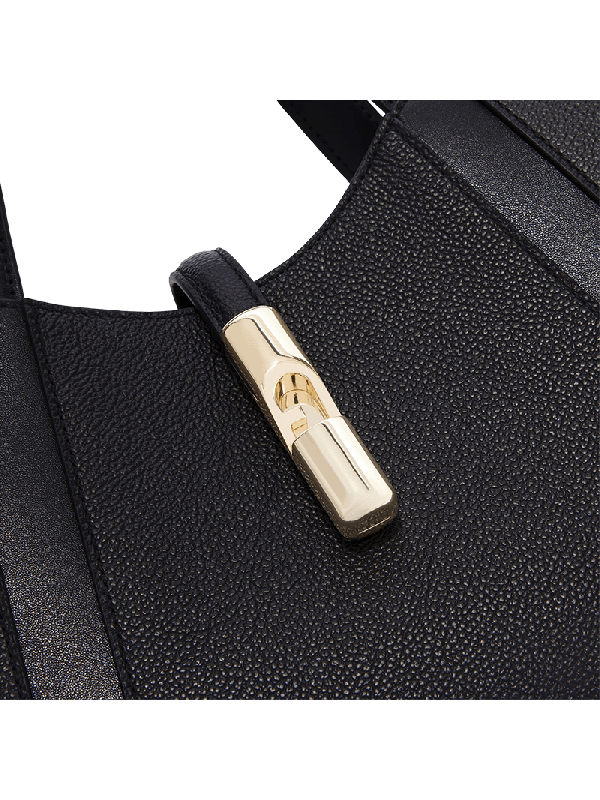 S dimenzijama nakita i elegantnom siluetom, horizontalna Furla Goccia torba od zrnate kože ukrašena je detaljima od glatke kože za svestran i moderan izgled. Ukrašena jedinstvenim cilindričnim okovom, s Arch logotipom i sjajnom završnom obradom, lako se stilizira kao ručna torba i crossbody zahvaljujući podesivom i odvojivom remenu za rame.