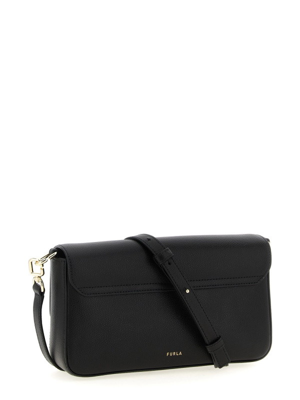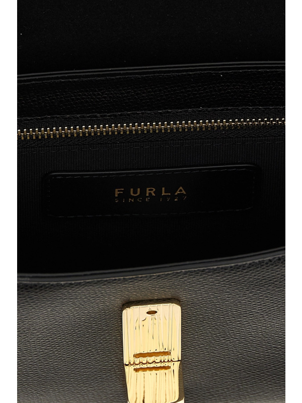 Magnetsko zatvaranje s cilindričnim metalnim okovima s Arco Furla logotipom, utisnuti logotip na stražnjoj strani, podesivi i odvojivi remen za rame.