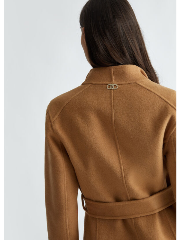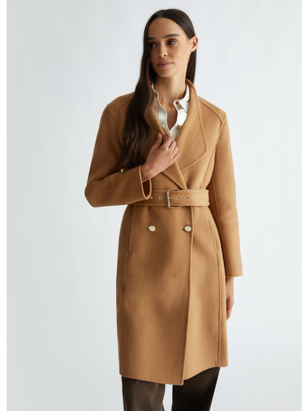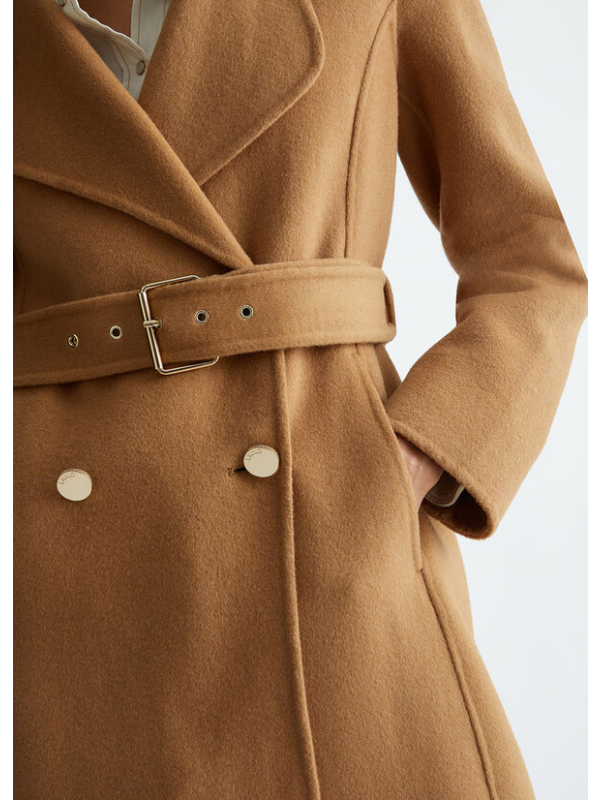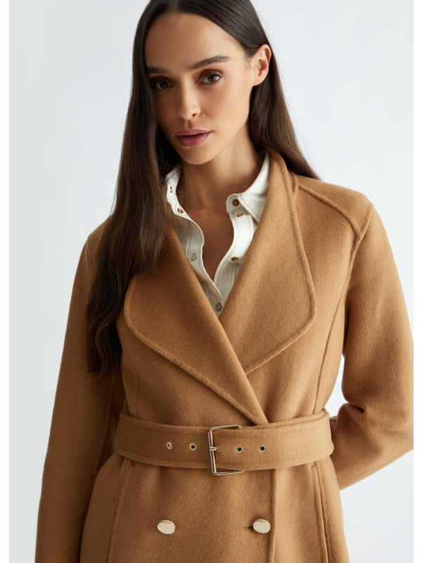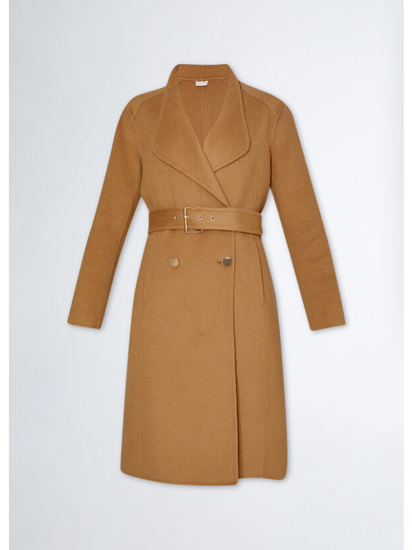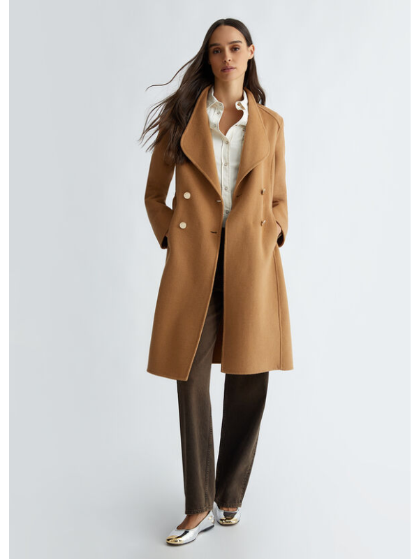 Ženski bež Liu Jo kaput s dvostrukim kopčanjem od mješavine vune