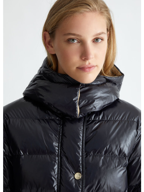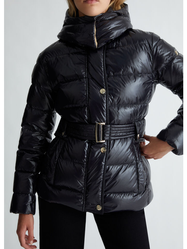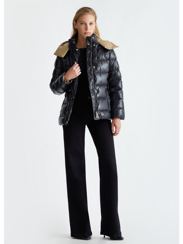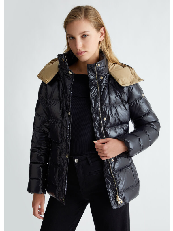 Ženska crna Liu Jo podstavljena jakna s kapuljačom