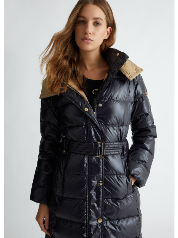 Ženska crna Liu Jo podstavljena jakna s kapuljačom