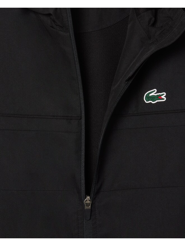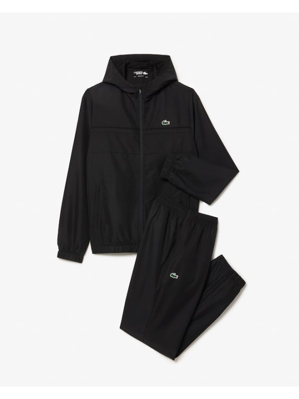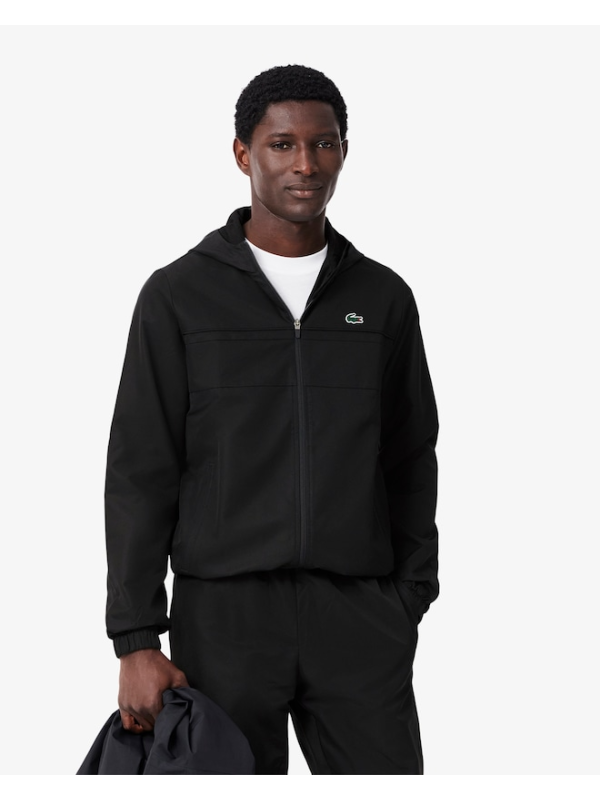 Muška crna Lacoste trenerka s kapuljačom i logom na prsima