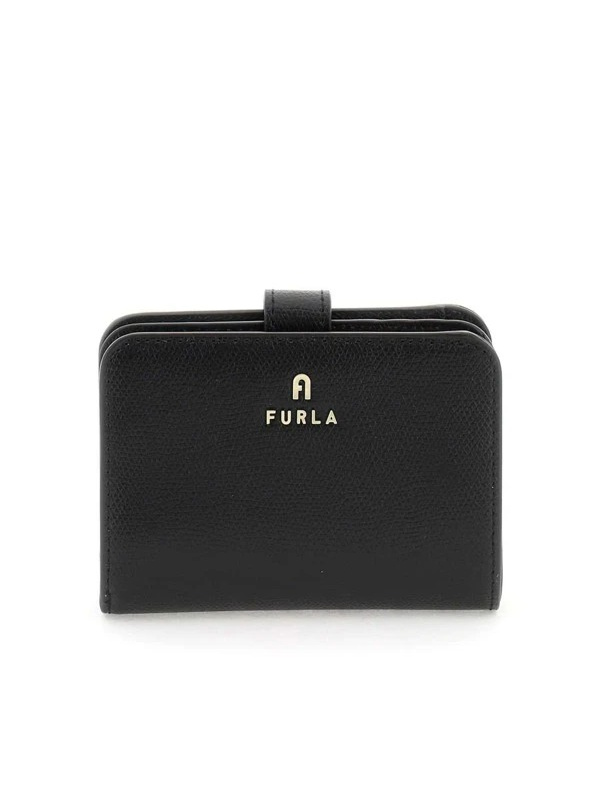 FURLA 'Camelia' dvostruki kompaktni novčanik izrađen od zrnaste goveđe kože s metalnim logom na prednjoj strani