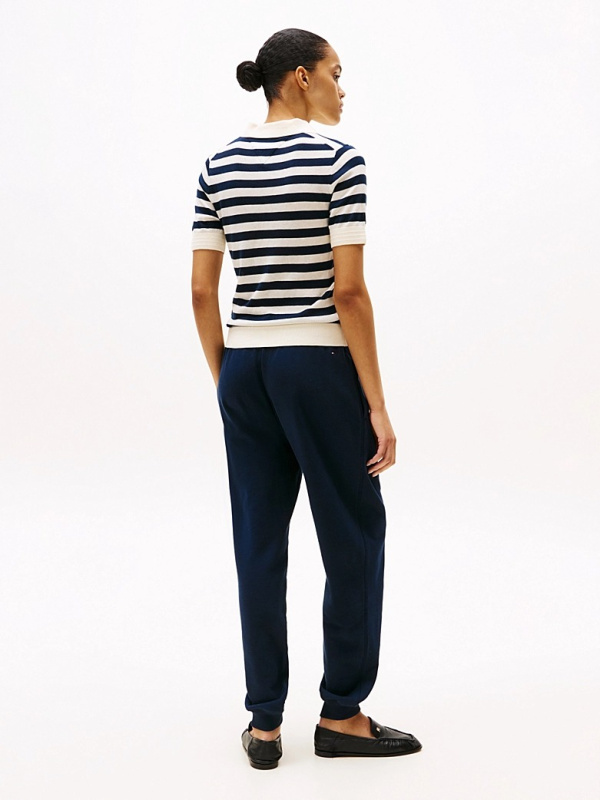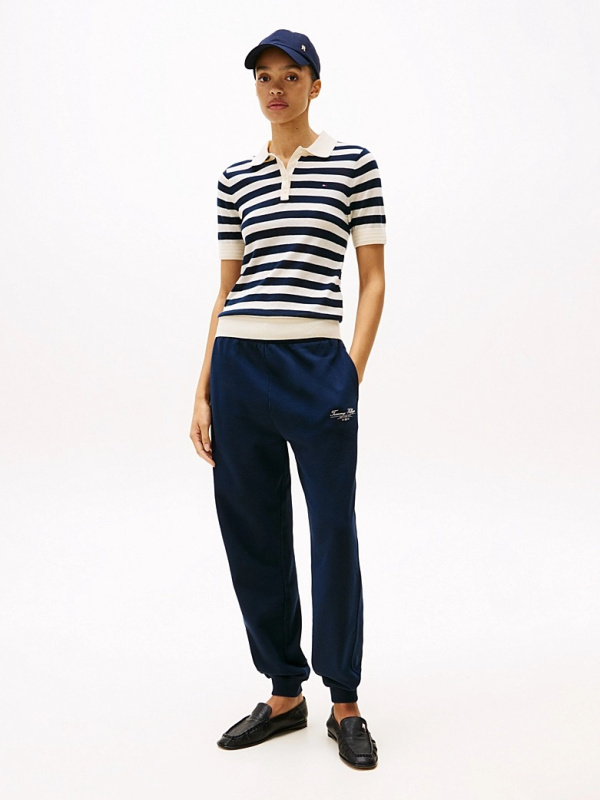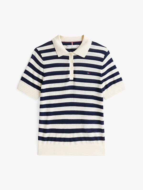Ženski Tommy Hilfiger pulover kratkih rukava na pruge u kombinaciji tamnoplave i prljavobijele boje