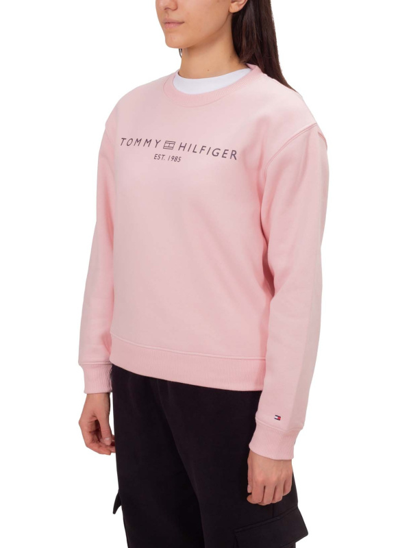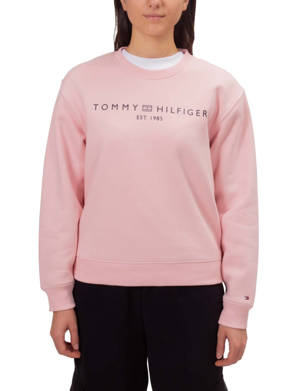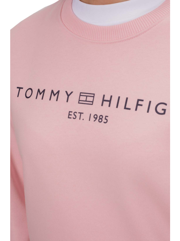 Ženski svijetlorozi Tommy Hilfiger duks s rebrastim dekolteom i otisnutim TH logom