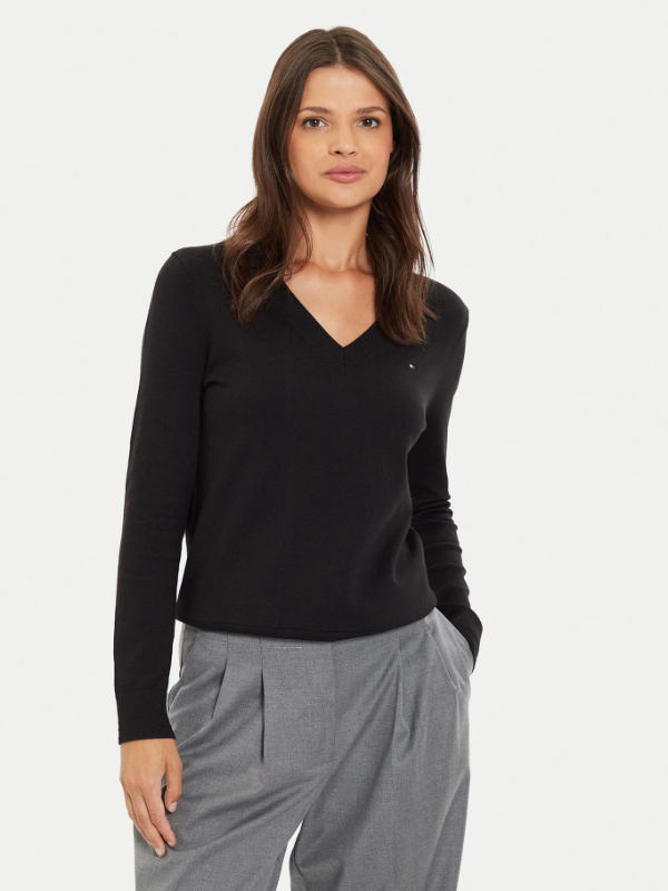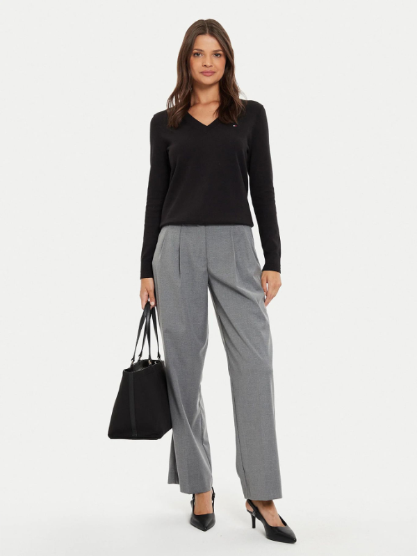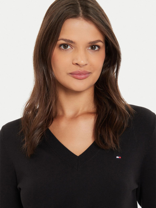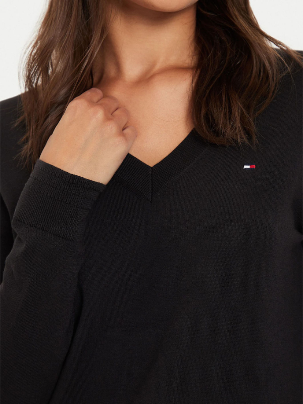 Ovaj pulover od organskog pamuka s laskavim V-izrezom i kanalastim pletenim detaljima kombinira raskošnu teksturu s udobnim stilom.