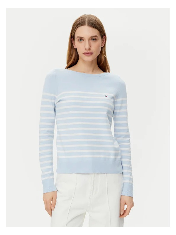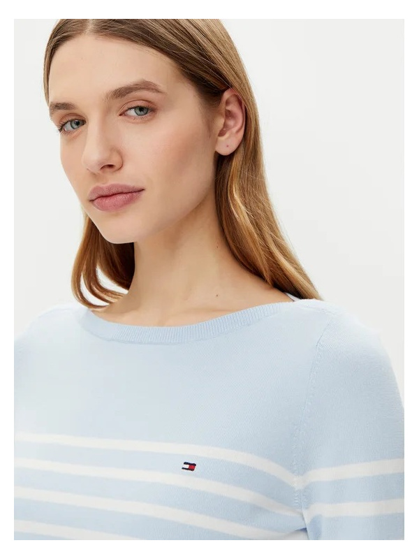 Ženska svijetloplavi Tommy Hilfiger pulover s bijelim prugama i logom
