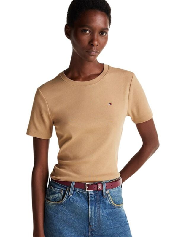 Ženska bež-smeđa Tommy Hilfiger majica kratkih rukava s logom na prsima