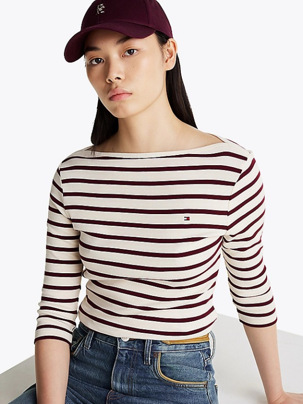 Ženska Tommy Hilfiger majica dugih rukava u kombinaciji bordo i krem bijele boje
